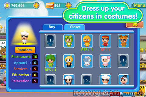 Người chơi sẽ xây dựng hơn 40 cửa hàng và tòa nhà khác nhau với 5 loại công việc độc đáo để phát triển thành phố nhỏ và tạo công việc cho công dân.