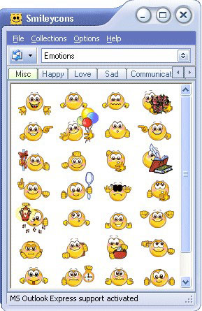 Smileycons là chương trình tập hợp nhiều biểu tượng mặt cười ngộ nghĩnh và các câu nói nổi tiếng, ngạn ngữ rất ý nghĩa dùng để chèn vào email, thư từ, tán gẫu...