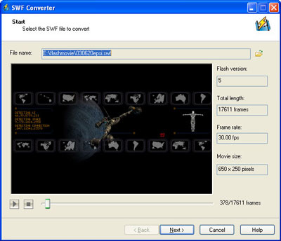 Phần mềm hỗ trợ chuyển đổi file Macromedia SWF sang AVI, file iPod, GIF động hoặc hình ảnh.