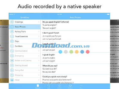 SpeakEasy for iOS bao gồm hàng trăm cụm từ cần thiết cho bất cứ người học ngoại ngữ nào. Dù bạn đang cần tham khảo các cấu trúc giao tiếp cấp tốc thường ngày để chuẩn bị cho chuyến du lịch sắp tới, hay đang chuẩn bị cho việc học ngoại ngữ, SpeakEasy for iOS luôn là sự lựa chọn hoàn hảo với những cấu trúc mà bạn cần.