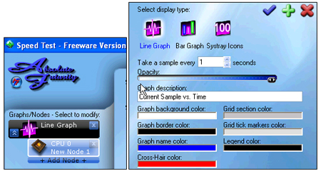 Bây giờ, bạn mở chương trình lên, trong khung bên trái bạn nhấn chọn lên biểu tượng để mở khung hiển thị thiết lập cho CPU lên. Tiếp đó, bạn nhấn chọn lên nút Line Graph, trong khung bên tay phải, bạn nhấn chọn mục Select display type bạn hãy chọn mục Line Graph. Tiếp đó, trong mục Take a sample every bạn chọn thời gian là 1 giây để công cụ kiểm tra tốc độ một cách chính xác nhất nhưng cũng không chiếm quá nhiều tài nguyên máy.