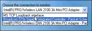 Để kiểm tra tốc độ Upload, tốc độ mạng LAN hoặc tốc độ sóng Wifi, bạn chỉ việc nhấn chọn lên các mục Upload hoặc Lan, hoặc Wifi Signal. Sau đó, chẳng hạn với kiểm tra tốc độ Upload file, mục Choose the connection to monitor: bạn hãy chọn thiết bị kết nối internet trong máy thì công cụ sẽ tự động kiểm tra cho bạn và hiển thị kết quả cho bạn thấy. Để kiểm tra đồng thời tốc độ Download và Upload file của mạng thì bạn chọn Total Up/Down.