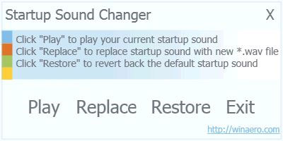 Bạn có thể sử dụng phần mềm miễn phí StartupSoundChanger 1.0 để thay đổi nhạc khởi động trên Windows 7 một cách dễ dàng. Chỉ cần tải về, chạy chương trình, nhấn nút Replace và chọn file nhạc định dạng WAV để thay đổi nhạc khởi động.
