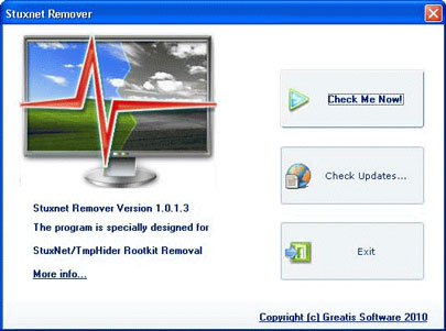 StuxnetRemover là một ứng dụng để loại bỏ Stuxnet/Tmphider Rootkit từ PC, ứng dụng này được thiết kế bởi Greatis Software và được giới chuyên môn đánh giá rất cao. Ngoài ra, nó cũng cung cấp chức năng khử trùng và làm sạch cho USB...