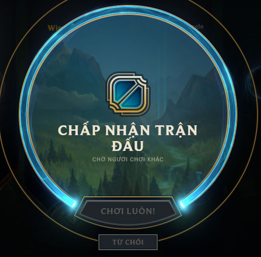 Lỗi không vào được trận đấu sau khi chấp nhận là lỗi liên quan đến máy chủ, lỗi này chúng ta sẽ phải kiên nhẫn chờ đợi hộp thoại Chấp nhận trận đấu biến mất đi. Tuy nhiên sau khi hộp thoại biến mất bạn không nên tiếp tục tìm trận đấu mà cần chờ cho máy chủ ổn định để không bị cấm tìm trận đấu trong khoảng thời gian dài.