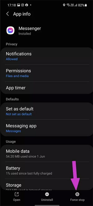Nếu ứng dụng Messenger có hoạt động bất thường trên điện thoại Android, mọi người cần buộc dừng ứng dụng và mở lại.