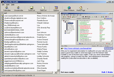 Subscribe Emails sẽ giúp bạn quản lý việc đăng kí vào các danh sách email (email mailing list) trên các website. Nó cho phép bạn kiểm tra các hòm thư hỗ trợ POP3 để đăng kí và hủy đăng kí, download nội dung email, lấy địa chỉ và tên người gửi,...