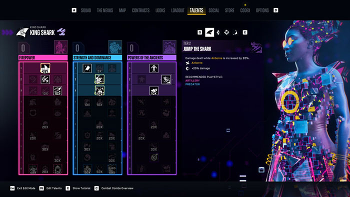 Talent của King Shark là sự phân chia lành mạnh giữa các buff về khả năng di chuyển, tầm xa, cận chiến và khiên. Để có cách xây dựng King Shark tốt nhất trong Suicide Squad: Kill the Justice League, trước tiên người chơi nên tập trung vào Talent sử dụng vũ khí hạng nặng. Thêm một số loại đặc quyền Talent khác vào danh sách kết hợp cũng khá ổn, nhưng tốt nhất hãy chỉ tập trung vào một khả năng.
