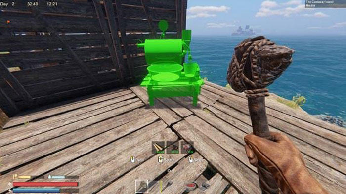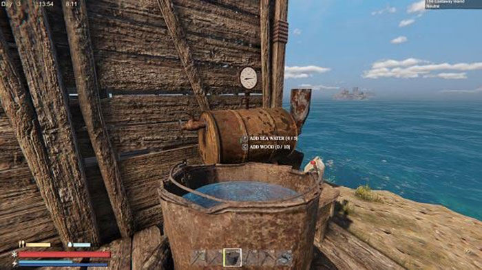 Sau khi đặt Simple Purifier, game thủ cần thêm nước biển vào đó thông qua xô nước biển, được chế tạo từ tab Tools trong menu Build, với 5 Scrap Metal. Trang bị xô rồi đi đến bờ biển của hòn đảo và nhấn F để đổ đầy nước biển vào xô.