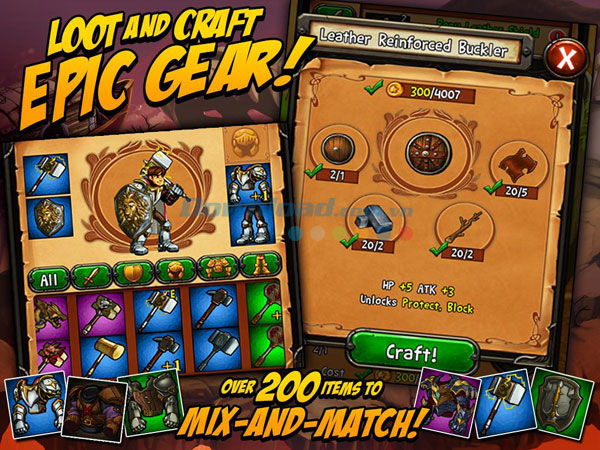 Tìm, trộn và kết hợp hơn 200 vật phẩm trang bị cho anh hùng của bạn