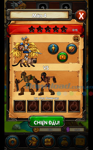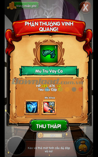 Sau cuộc chiến đầu tiên, bạn sẽ nhận được chiếc mũ đầu tiên cho người anh hùng đi kèm những token mới sẽ có sẵn trong cuộc chiến. Các hướng dẫn trong game sẽ giúp bạn trang bị mũ mới cho hero. Sau đó, bạn có thể chạm vào nút thứ 2 để bắt đầu cuộc chiến tiếp theo hoặc lặp lại bước 1 lần nữa.