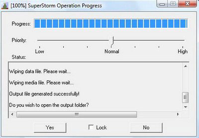 Sau khi quá trình kết thúc, chương trình hỏi bạn có muốn mở thư mục chứa file ngụy trang được tạo ra hay không. Bạn nhấn Yes để mở thư mục này. Trong trường hợp bạn nhấn nhầm nút No, để tìm đến file do chương trình tạo ra, tại giao diện chinh, bạn nhấn nút Explorer để tìm đến thư mục riêng của Super Storm và truy cập vào thư mục Output để lấy file được chương trình tạo ra.