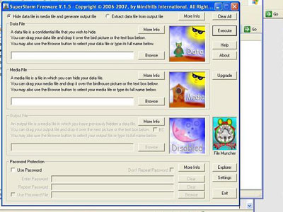 SuperStorm là tiện ích miễn phí sẽ cho phép bạn ẩn dấu file bên trong các file media (như file ảnh, file nhạc, file video...) và các file media này vẫn hoạt động bình thường như không hề “che dấu” những dữ liệu khác bên dưới.