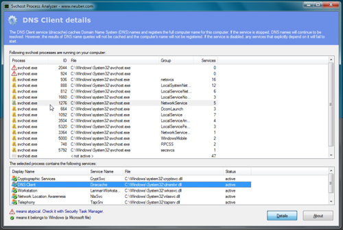 Virus và malware thường núp bóng dưới dạng file hệ thống svchost.exe để chiếm quyền điều khiển máy tính. Những tập tin svchost.exe mang biểu tượng dấu chấm than trong phần mềm Svchost Process Analyzer có nguy cơ bị nhiễm cao hơn. Người dùng có thể sử dụng phần mềm này để phát hiện các tiến trình đáng ngờ.
