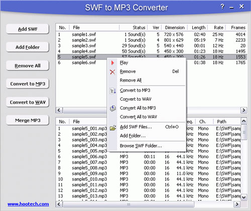 Phần mềm có thể chuyển đổi SWF sang MP3, SWF sang WAV, FLV sang MP3 và FLV sang WAV.