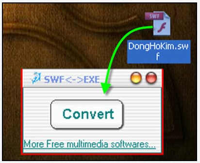 Ngoài ra chương trình còn hỗ trợ thao tác kéo thả, thay vì nhấp vào nút Convert, người dùng cũng có thể kéo tập tin .swf hay .exe thả vào cửa sổ chương trình để thực hiện thao tác chuyển đổi.