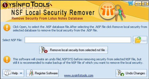 SysInfoTools NSF Local Security Remover là một công cụ tự động và rất mạnh mẽ, cho phép người dùng có thể loại bỏ các hạn chế bảo mật cục bộ từ các file cơ sở dữ liệu NSF đã được bảo mật của lotus Notes. Công cụ này sẽ loại bỏ bảo mật chỉ với một vài cú kích chuột và nhấn phím. SysInfoTools NSF Local Security Remover là giải pháp tuyệt vời trong việc loại bỏ bảo mật từ các file cơ sở dữ liệu NSF của Lotus Notes.