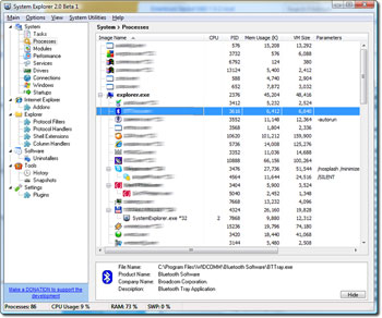 System Explorer 3.2.2 là một phần mềm miễn phí cung cấp cho bạn thông tin chi tiết về hệ thống và các thao tác với các tiến trình đang chạy trên máy tính hay chạy khi khởi động hệ thống...