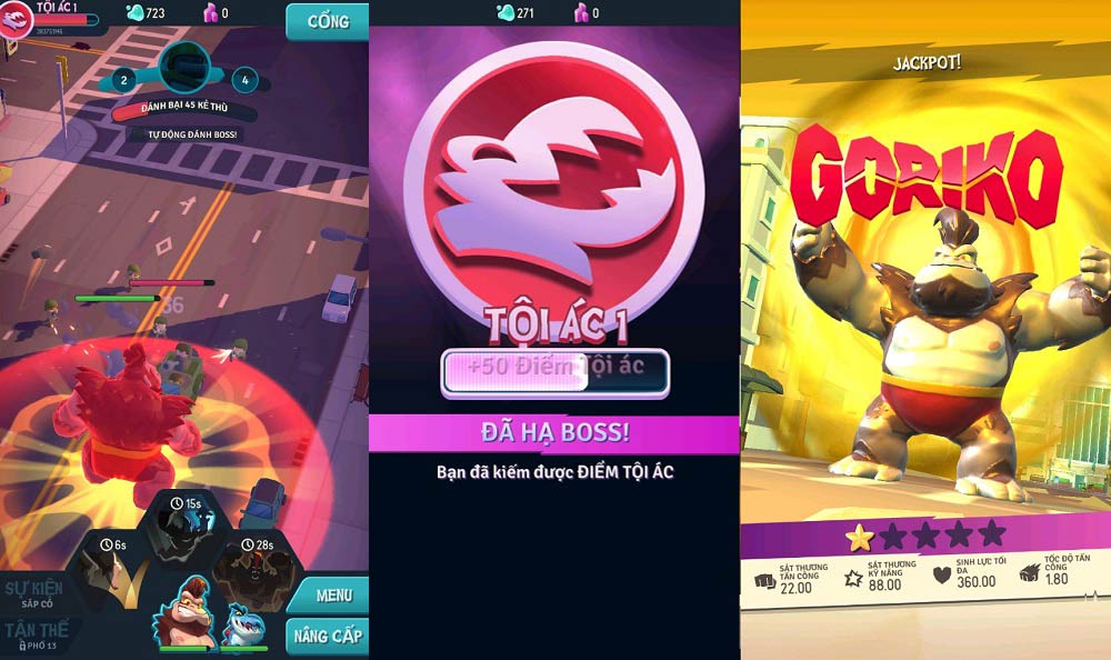 - Khi hoàn thành các màn chơi và tiêu diệt được boss cuối cùng, bạn sẽ nhận được điểm Tội Ác. Sử dụng điểm này để tăng cấp nhân vật cho mình, đồng thời nhận được các rương chứa nhiều phần thưởng hấp dẫn.