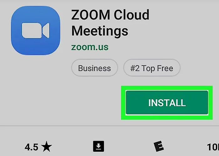 Bước 3: Màn hình sẽ chuyển sang trang tải xuống Zoom trên Play Store, nhấn vào nút Install màu xanh.