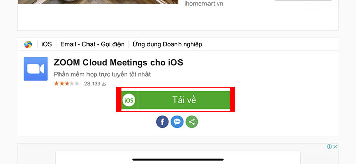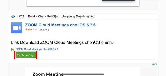 Bước 1: Nhấn vào ô tải về Zoom Cloud Meetings cho iOS dưới đây.