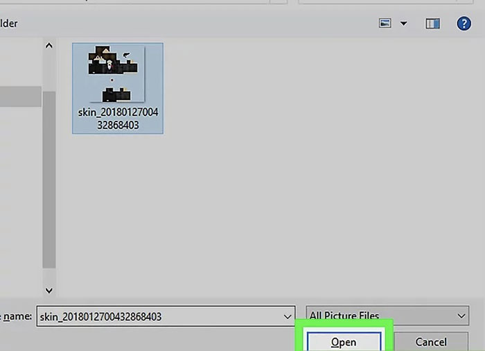 Bước 5: Chọn tệp skin cần tải lên và nhấn Open để tệp được đưa lên trang Profile