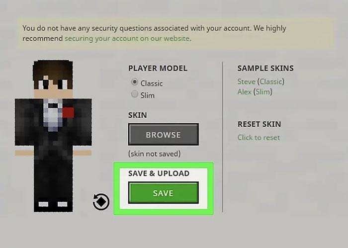 Khi đã lựa chọn được skin ưng ý, người chơi sẽ cần phải đưa nó vào thiết bị Windows 10 của mình. Mọi trang web về skin Minecraft cho phép tạo hoặc chọn skin đều phải có tùy chọn tải xuống hoặc lưu. Khi được nhắc lưu tệp, hãy chọn Save.