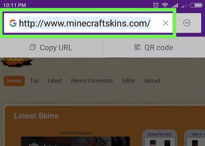 Bước 1: Vào http://www.minecraftskins.com trên điện thoại