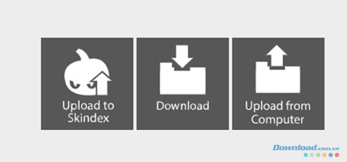 Cuối cùng, các tùy chọn dưới cùng bên phải cho phép mọi người tải skin mình đã tạo vào thiết bị (Download), tải lên Skindex (Upload to Skindex) hoặc tải lên skin từ máy tính (Upload from Computer) để sửa đổi tùy ý. Người chơi cũng có thể tải xuống các skin do người khác tạo ra và sửa đổi chúng theo cách này.