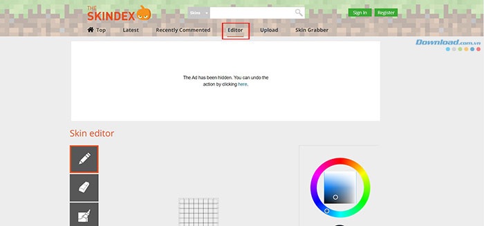 Việc tạo và tải xuống các skin Minecraft khá dễ dàng. Người chơi chỉ cần truy cập trang web minecraftskins.com và chọn tab Editor.