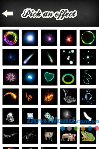 TapFX mang đến bộ sưu tập hơn 100 hiệu ứng ảnh độc đáo như: ánh sáng, sao và sao chổi, chuyển động màu, lửa, trang trí,...