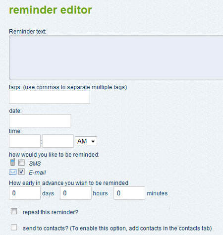 Lúc này, bạn sẽ được chuyển đến trang quản lý. Tại đây, bạn lập lịch (thẻ Reminders), tạo danh sách liên lạc (thẻ Contact), thiết lập thông tin đăng ký (thẻ Settings). Dựa vào tính năng lên lịch và thông báo qua SMS, chúng ta có thể gửi tin nhắn miễn phí đến các thuê bao di động khác. Cách thực hiện như sau:
