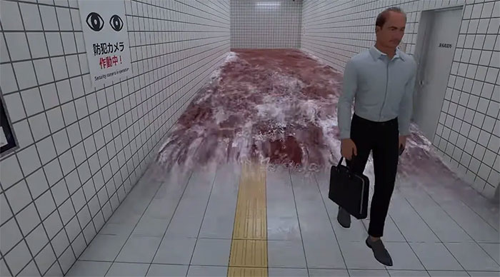 Một làn sóng nước màu đỏ, hoặc có thể là máu, sẽ bắt đầu tràn ra khắp góc và đuổi theo game thủ suốt hành lang. Nếu không phản ứng đủ nhanh, nó sẽ gây mất tập trung và trò chơi kết thúc.