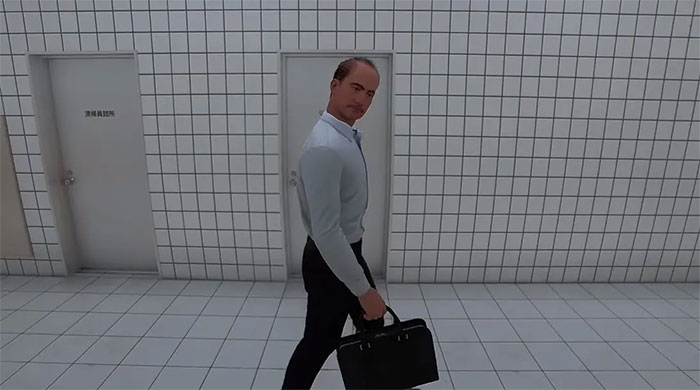 Vì người đàn ông bước xuống là nhân vật chính của mọi phân cảnh nên rất dễ để không chú ý đến phân cảnh này. Anh ta hành động như thường lệ, nhưng sẽ nở một nụ cười toe toét trên khuôn mặt.