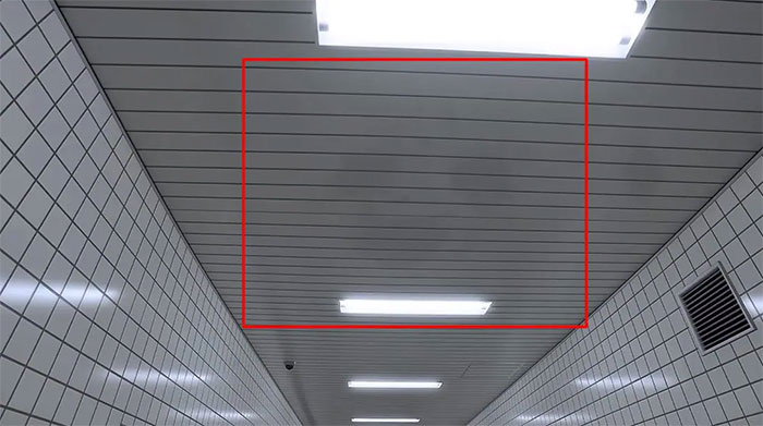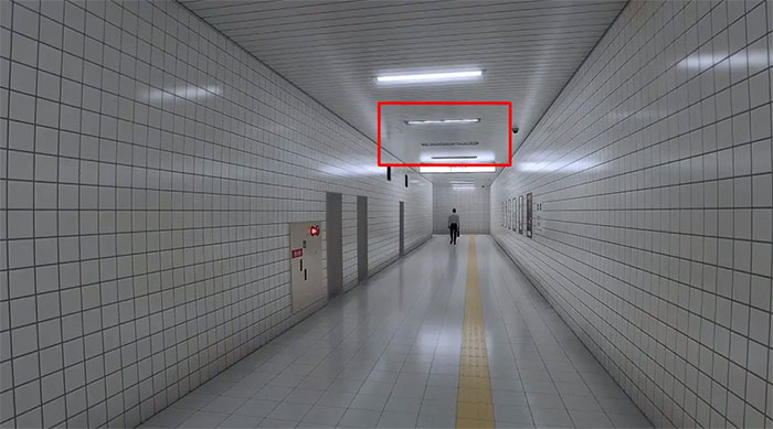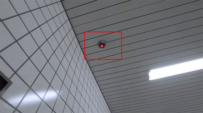 Camera này nằm ở giữa hành lang và thường có màu đen.