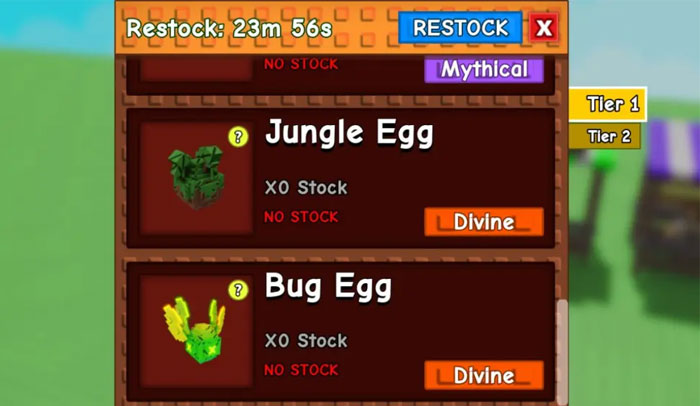 Người chơi nạp tiền có thể restock ngay cửa hàng với giá 90 Robux. Nếu may mắn Jungle Egg xuất hiện, game thủ có thể mua với giá 30,000,000 Sheckles hoặc 199 Robux