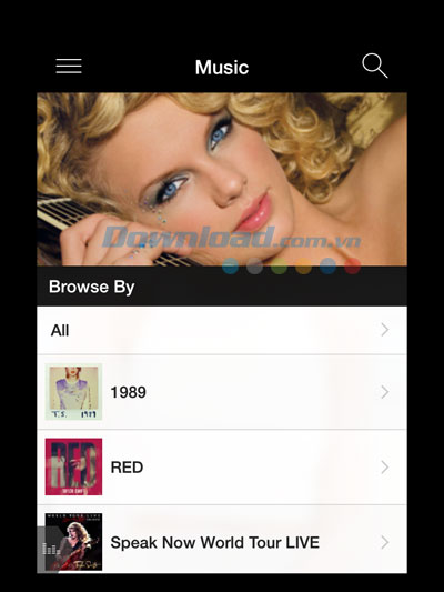 Ứng dụng Taylor Swift được phân loại thành 6 danh mục chính, bao gồm mục Âm Nhạc, Tin Tức, Video, Hình Ảnh, Tour biểu diễn và Trò Chuyện. Người dùng dễ dàng truy cập từng mục để khám phá những ca khúc mới của Taylor Swift, tin tức cập nhật, hình ảnh, video, lịch diễn hay trò chuyện với những người hâm mộ khác. Chẳng hạn như mục Music là nơi bạn có thể nghe tất tần tật các ca khúc mà Taylor Swift sáng tạo và biểu diễn, được phân chia theo từng album theo thứ tự từ mới nhất đến cũ nhất.