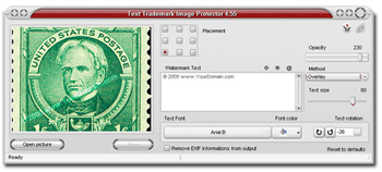 Text Trademark Image Protector là một phần mềm tạo hình mờ mạnh mẽ giúp bạn bảo vệ các hình ảnh kỹ thuật số. Phần mềm tạo hình mờ sẽ này đặt những hình mờ không ai có thể gỡ bỏ vào hình ảnh của bạn. Watermark Creator của chương trình sẽ cho phép bạn thêm hình mờ vào bất kỳ bức ảnh nào. Với giao diện dễ sử dụng, chương trình sẽ giúp bạn bảo vệ bản quyền hay đơn giản chỉ là thêm các lời nhận xét vào bất kỳ bức ảnh nào.
