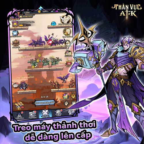 Với cơ chế AFK treo máy rảnh tay, người chơi có thể dễ dàng thăng cấp nhanh chóng, chạm nhẹ là nhận được rất nhiều tài nguyên, mang đến trải nghiệm game độc đáo. Hơn thế nữa, mọi người có thể tham gia nhiều trận chiến cùng lúc, không cần mất thời gian cho những trận chiến dài hơi.