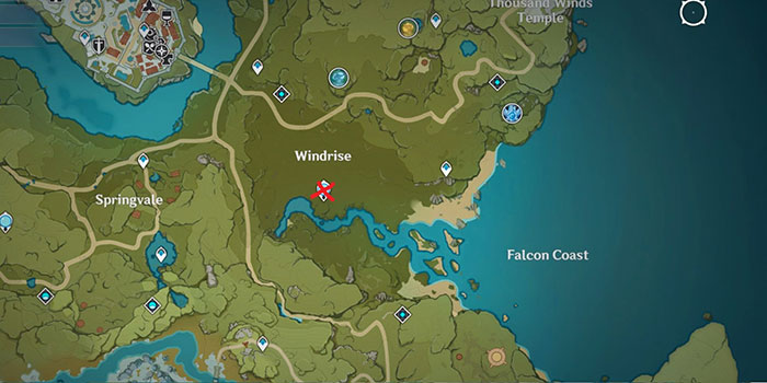 Khi dịch chuyển tức thời tới đây, game thủ có thể đang đối mặt với một hướng không có Anemo Crystalfly trong tầm nhìn, chỉ cần quay lại để thu thập chúng.