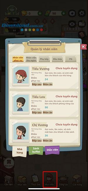 Việc thuê nhân viên mới và nâng cấp họ không chỉ giúp kiếm được nhiều tiền hơn mà còn làm tăng xếp hạng dịch vụ của nhà hàng, đây là 1 trong 3 yếu tố quyết định xếp hạng chung của nhà hàng.