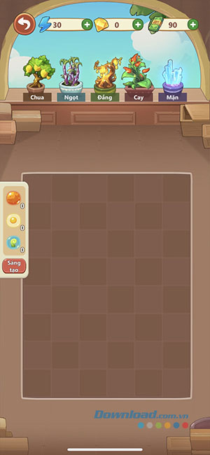 Để bắt đầu, hãy chạm vào bất kỳ loại cây nào ở gần đầu màn hình. Có 5 hương vị là: Chua, Ngọt, Đắng, Cay và Mặn.