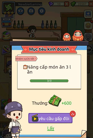 Trong giai đoạn đầu trò chơi, hoàn thành nhiệm vụ là bệ phóng giúp nhà hàng có thêm ngân sách để phát triển. Để tối đa phần thưởng từ nhiệm vụ, người chơi có thể xem quảng cáo để nhận gấp đôi số tiền.