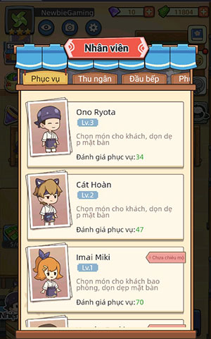 Cùng với mục đích phục vụ khách hàng nhanh hơn, thuê nhân viên sẽ giúp giảm thời gian và tối đa hóa quy trình phục vụ. Người chơi sẽ không cần phải dùng tay chạm vào từng vị khách hay từng dụng cụ nhà bếp để nấu nướng, mà thay vào đó, nhân viên sẽ làm tất cả một cách tự động. Việc giảm thời gian phục vụ, giảm thời gian khách dùng bữa đều góp phần tăng lượng khách ghé thăm, từ đó tăng lợi nhuận cho tiệm sushi.