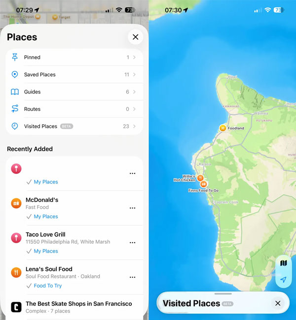 Apple Maps tự lưu trữ lịch sử địa điểm bạn đã ghé, kèm ngày giờ chi tiết. Dữ liệu được lưu cục bộ, chỉ mình bạn xem được.