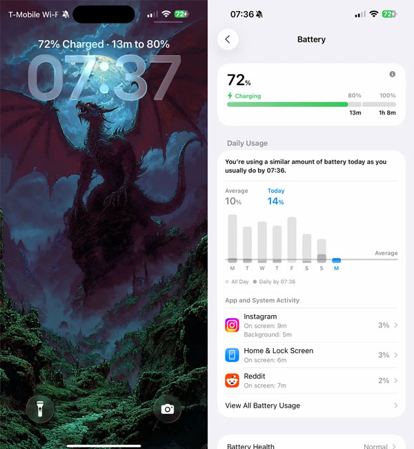 Khi cắm sạc, màn hình khóa sẽ hiển thị thời gian cần để đạt 80% và 100%.