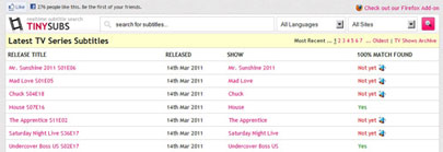 Nhằm phục vụ và đáp ứng tốt hơn công việc tìm kiếm phụ đề phim cho các tín đồ điện ảnh, dịch vụ Tinysubs cung cấp một add-on dành cho trình duyệt Firefox. Với add-on mang tên Tinysubs Serach Bar, bạn dễ dàng thực hiện nhanh thao tác tìm kiếm phụ đề phim chỉ với vài cú click chuột.