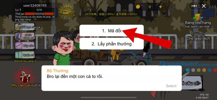 Thao tác nhập giftcode Câu Cá Vạn Cân quy đổi phần thưởng rất đơn giản với các bước được thực hiện như sau: