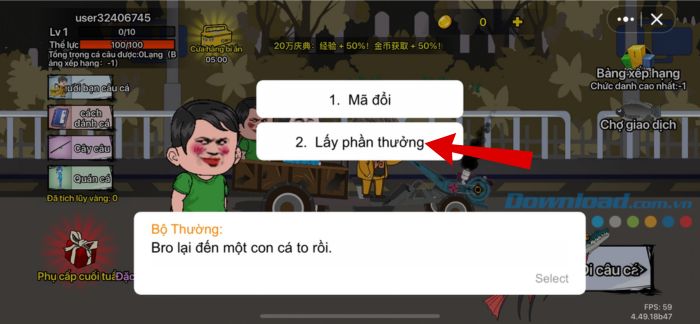 Bên cạnh việc nhập giftcode Câu Cá Vạn Cân, người chơi có thể nhận thưởng sự kiện bằng cách: