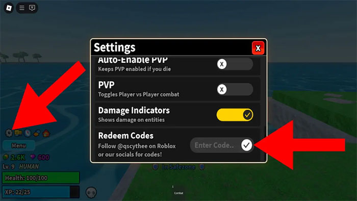 Thao tác nhập code [CURSE UPDATE] Meme Fruits rất đơn giản, tương tự các game Roblox khác, với các bước như sau: